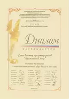 2001 год. Лауреат премии «Товар года» в номинации «Лучшая специализированная розничная сеть», вручаемой Национальной торговой ассоциацией и Московской международной бизнес-ассоциацией.